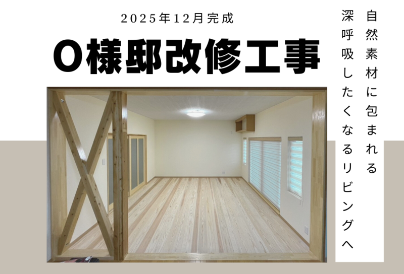 O様邸改修工事|自然素材に包まれる深呼吸したくなるリビングへ