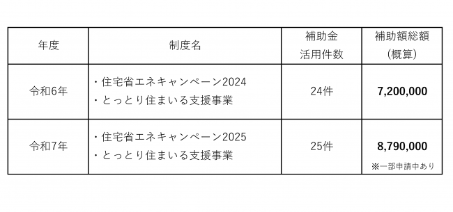 ※下記に令和6年・令和7年の補助金活用実績をまとめています。