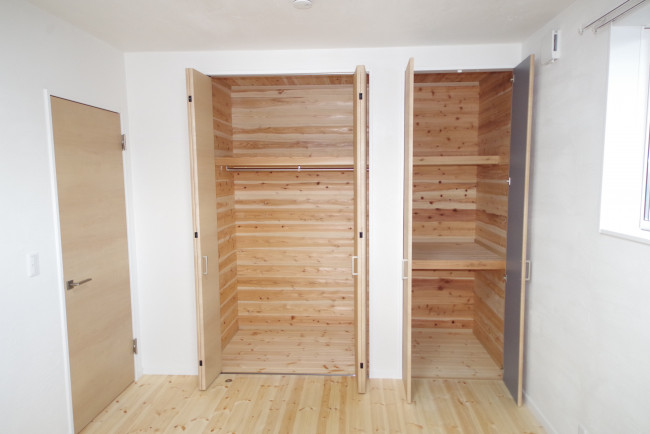 特に、換気のしにくいクローゼットや収納を無垢材で仕上げれば、湿気対策にも効果的です。